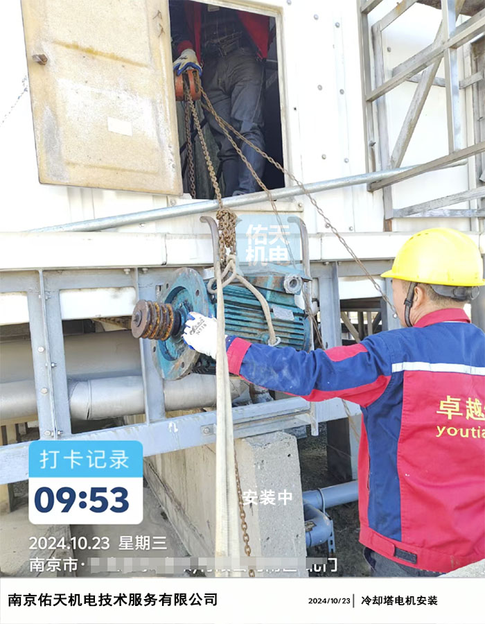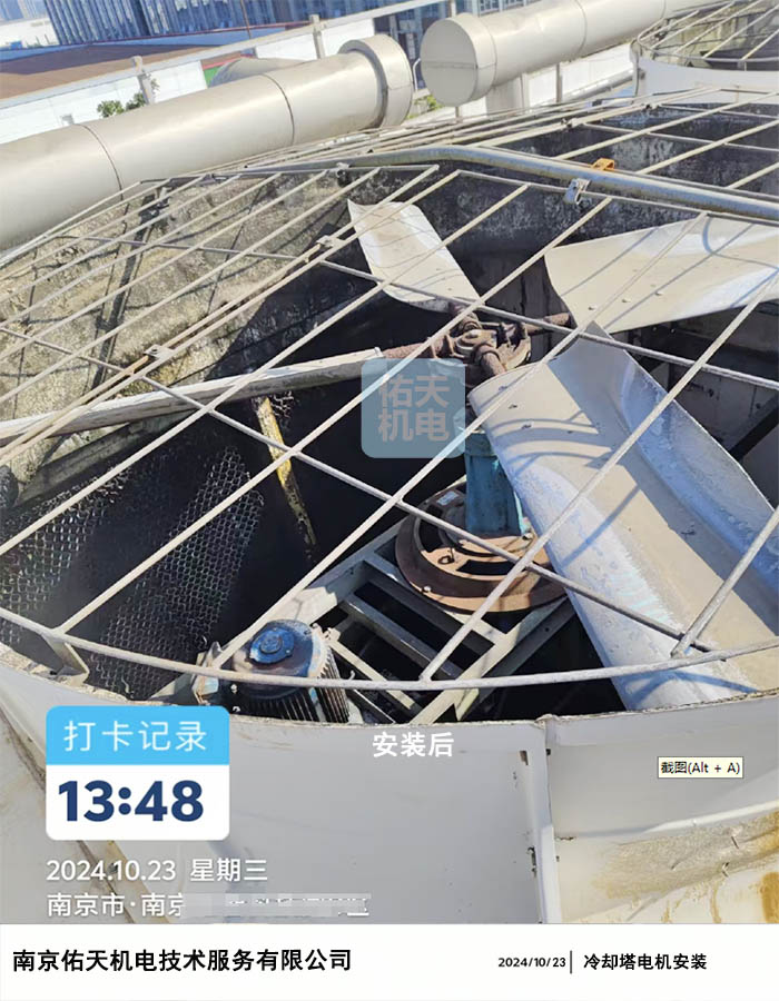 7.润滑与传动部件维护:对冷却塔的风机、水泵和电机等设备进行润滑保养,定期添加润滑油或润滑脂。检查设备的传动部件,如皮带、链条等,确保其张紧度合适,磨损程度在允许范围内。